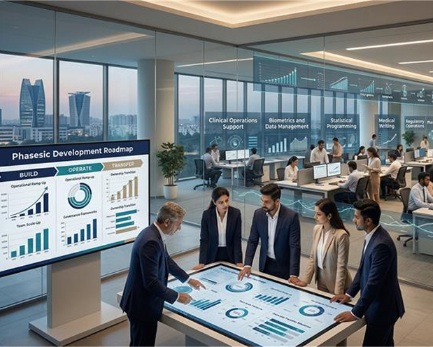 Not every organization wants to establish a fully owned capability center from day one. Many prefer a phased model that reduces setup complexity, accelerates operational readiness, and creates a clear path to long-term ownership.