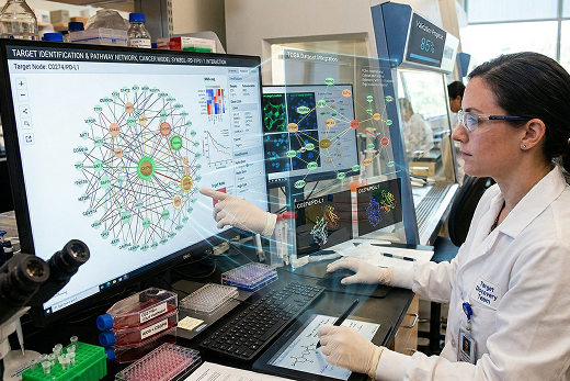 AI-driven target identification and validation integrating multi-omics, genetic evidence, and functional genomics to de-risk drug discovery.